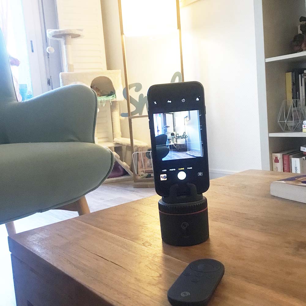 Pour plus de détails, il s’agit donc d’un support automatisé qui relié par bluetooth à mon smartphone permet de gérer les lives, timelapses, mais également les panoramas photo le tout à 360°. Idéal pour les off video quand je travaille sur ordinateur mais également filmer les boutiques de mes clients/partenaires.