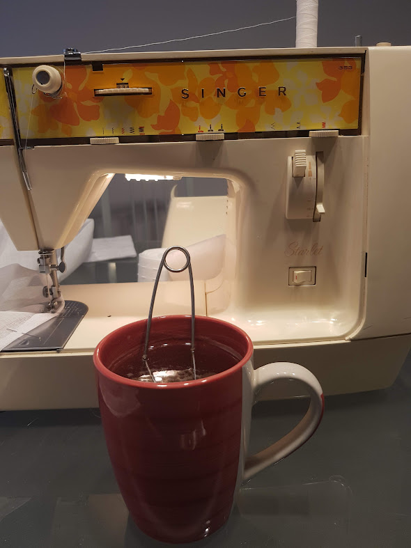 Quand je couds : une table dégagée, 1 machine à coudre, fil, aiguilles, papier, crayon à papier, ciseaux papier et couture, tissu…. Inspiration, et du temps… de la musique dynamique…