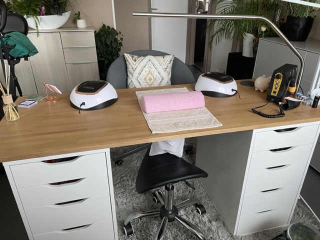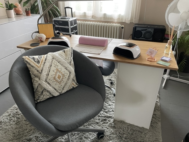 Après ma formation et l’obtention de mon diplôme en avril 2022, j’ai créé chez mes parents mon petit espace pour mes prestations et pour pouvoir accueillir mes client(e)s. En plus, c’était déjà plus simple pour moi financièrement car je n’ai pas besoin de payer de loyer, ni de charges, et je peux organiser ma journée comme je le veux, et surtout par apport à mes douleurs, car oui j’aime ce que je fais mais ce n’est pas pour ça que les douleurs ont disparues.