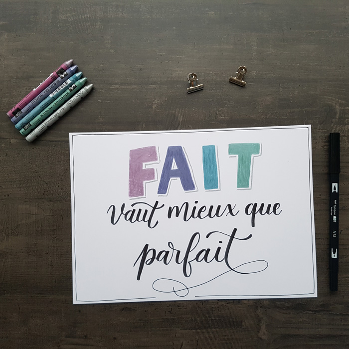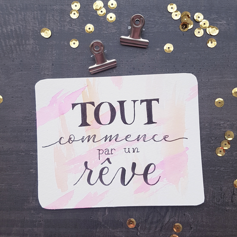 Je suis complètement autodidacte, je me suis beaucoup formée en ligne auprès d’artiste étrangers (le lettering cartonne aux US, en Allemagne par exemple). J’ai démarré en créant un blog, Lettering Créatif et une communauté de fan de lettering. Après quelques tergiversations, j’ai créé ma boîte début 2019.