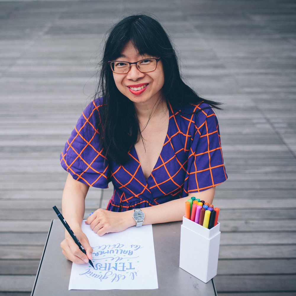 Y-Lan NGUYEN-THE, 45 ans, artiste en lettering (c’est de la calligraphie moderne). J’ai un parcours initiale d’Ecole de commerce et j’ai longtemps été chef de projets dans des Grands Groupes ou en étant consultante. J’ai d’ailleurs adoré cette époque, j’ai beaucoup appris, beaucoup voyagé, compris le management d’équipe, etc. Mais ce n’était pas assez artistique et créatif pour moi je pense…