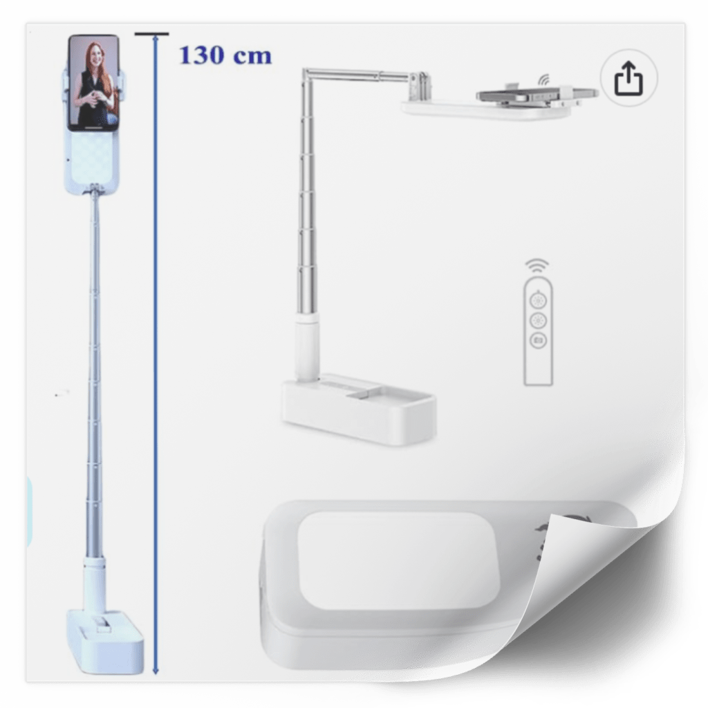 Je suis super contente de mon achat il réunis en un seul appareil : le support de bureau, l’anneau lumineux, et trépied mobile sans montage/démontage.