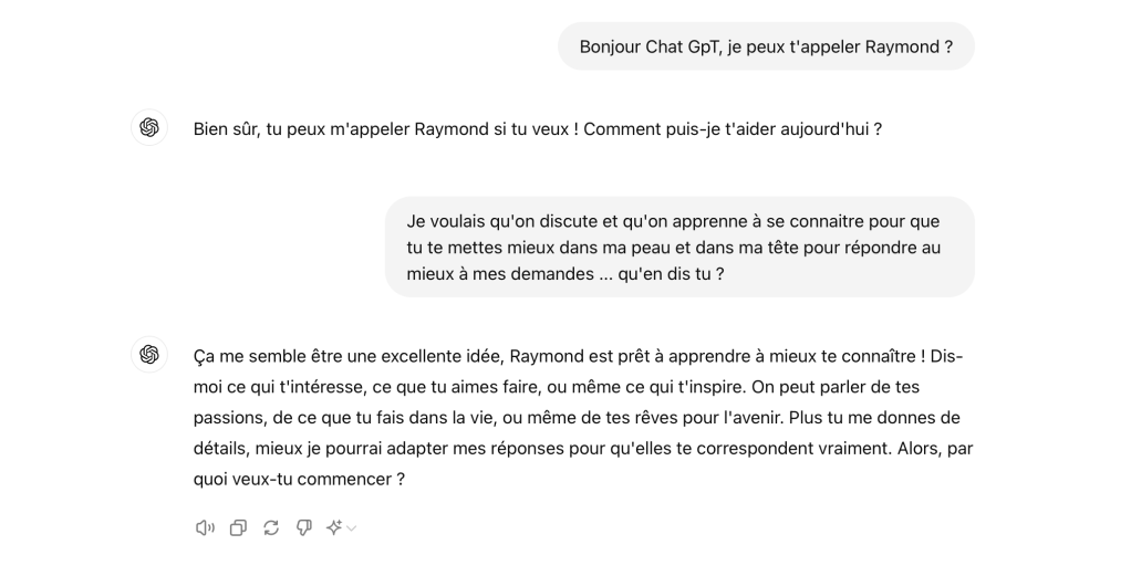 - Brainstorming : Lorsque je suis à court d’idées ou que je cherche à explorer de nouvelles perspectives, je consulte ChatGPT. Ses suggestions m’aident souvent à voir les choses sous un autre angle.